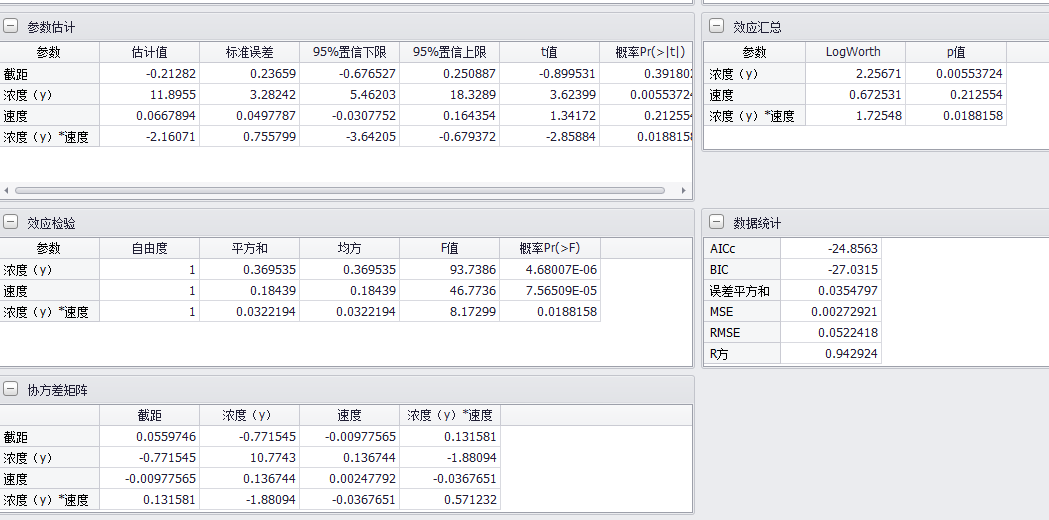 步驟3:選擇模型(x)值,添加到右邊的*Y;選擇濃度(y)、速度,添加到右邊的*X;同時(shí)選中濃度(y)、速度,添加到交叉。然后點(diǎn)擊【確定】。
