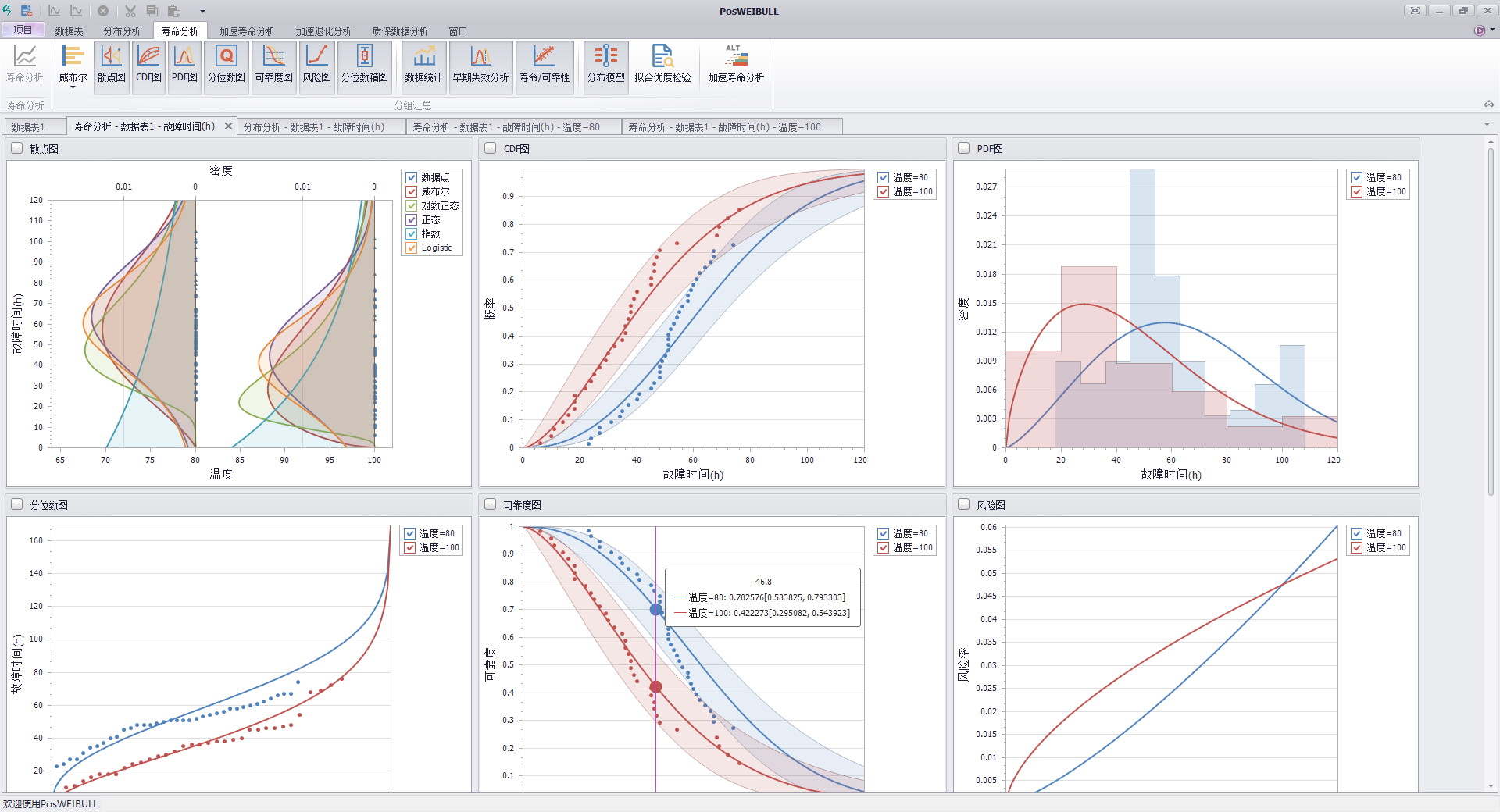 5、增加了包括事件圖、分位數(shù)圖、可靠度圖、風(fēng)險(xiǎn)圖、分位數(shù)箱圖、診斷圖等圖形化分析結(jié)果。